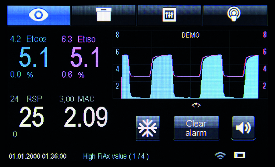 Technology based on the infrared method of measuring, enables to measure anesthetics and CO₂ concentration precise and fast due to an in-house high-precision sensor |